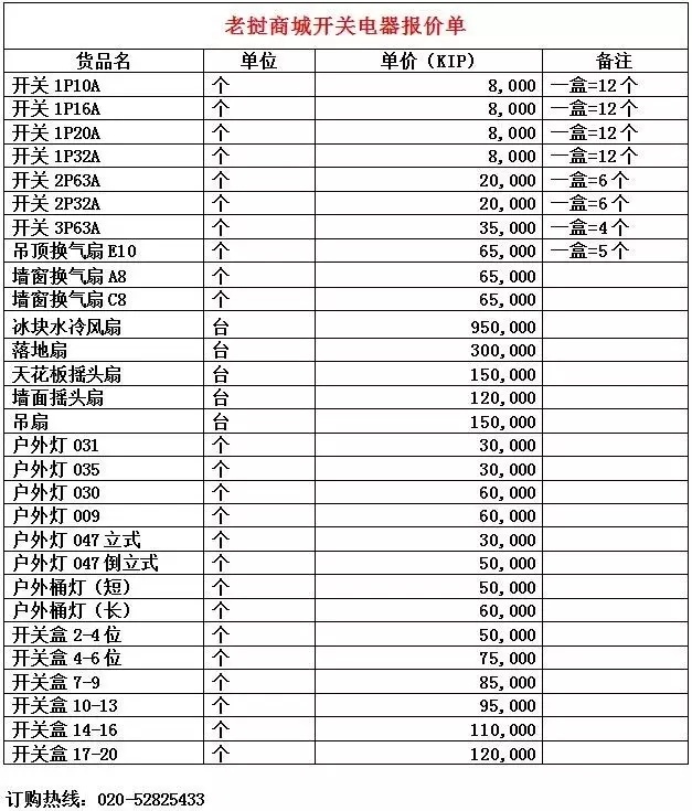 210000基普/9开关/件 |