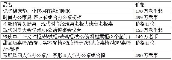 办公家具/床垫价格