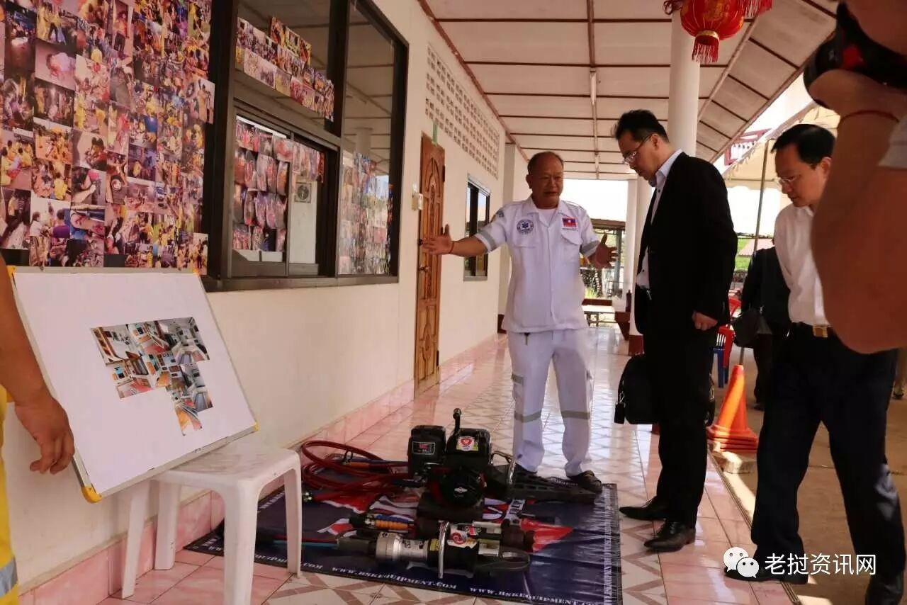 访问期间,江岩副会长等一行听取了陈毅奋主任汇报华助中心成立以来所做的工作,他提到了由当地警察、医生、大学生等志愿者组成的华助中心救助队并设立1628的救助热线,一年多来,共出勤560多次,救助了450多人,获得老挝政府高度评价,多次嘉奖感谢。陈毅奋说,目前万象华助中心已经成为老挝主要的社会救助力量之一。