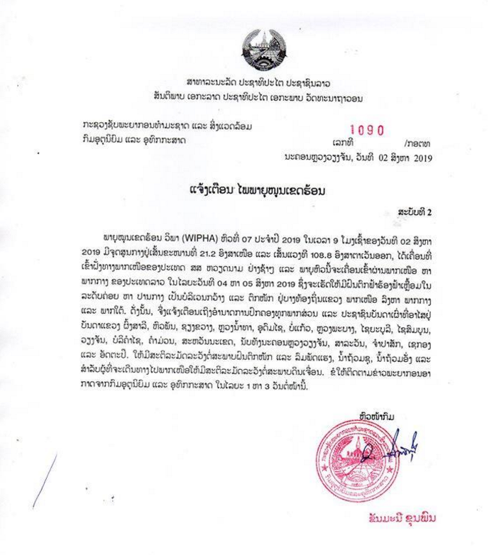 气象局发布7号热带风暴预警之后,2019年8月4-5日该热带风暴席卷了老挝北部及中部,此外,还伴有雷暴雨天气。