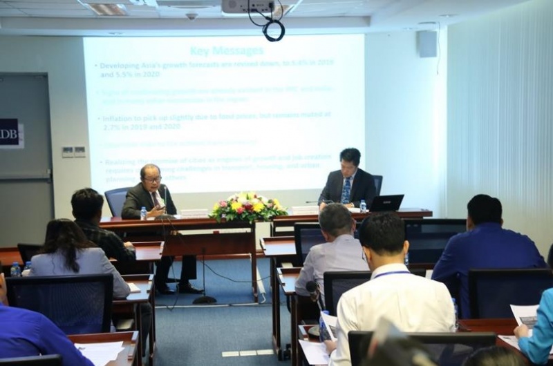 2019年亚洲开发银行最新预估报告发布会于2019年9月25日举行,由亚洲开发银行运营管理专家拉达纳岱·琅拉班迪先生以及亚洲开发银行资深经济学家苏林通·鸿卡姆行先生进行汇报,有来自各个部门和研究院的受邀嘉宾参加。