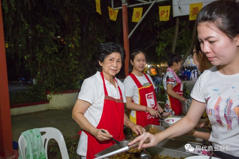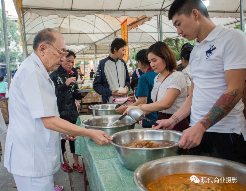 现场,永珍善堂主任张应源老先生不停张罗,或亲自施斋,或接待人员,张罗桌椅。华助中心的志愿者和周围的村民也赶来帮忙,他们不辞辛劳,,十多岁的孩子们忙上忙下,或在敲锣打鼓舞狮,或在搬动物资,或在洗刷碗盘。他们是善堂的生力军,也是慈善的传承者。