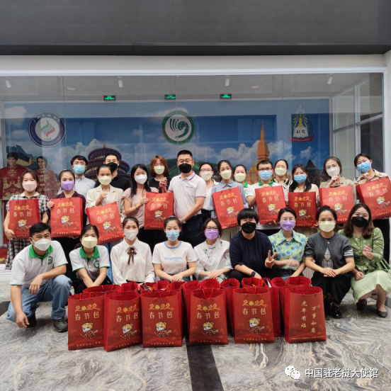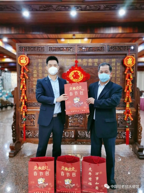 虎年春节来临之际,为体现党和国家对海外同胞的关心关爱,驻老挝使馆为在老中国同胞精心准备“春节包”。项方强参赞代表使馆分别向侨团和华助中心、商会代表赠送,并及时送至在老留学生、公派志愿者教师及中资企业困难人员手中。侨团和留学生代表感谢祖国的温情关怀和使馆的牵挂慰问,表示将安心工作学习、做好科学防疫、平安祥和过年,以更加饱满的热情投身中老友好事业。