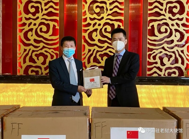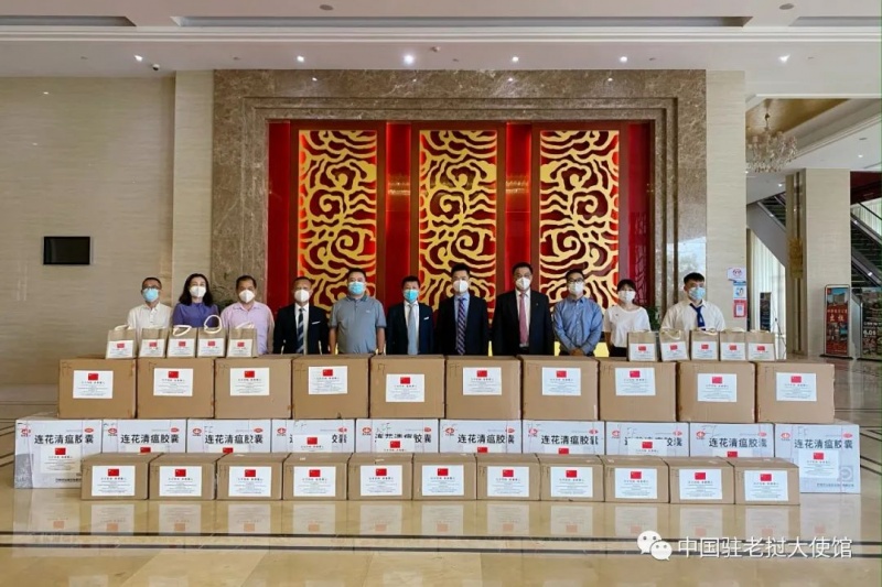 中国驻老挝大使馆向老挝侨团赠送抗疫“暖心包”